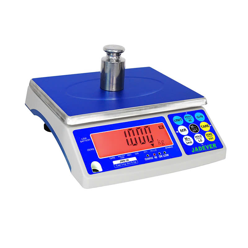 - Cân điện tử JWN-6K là mẫu cân thông dụng có độ chính xác đến từng gram ứng dụng trong nhiều ngành như: Cân định lượng, cân trừ bì, cân cộng dồn, cảnh báo giới hạn trên/dưới, cân sử dụng cho sản xuất, đóng gói, kiểm kê, cảm ứng lực điện từ bên dưới. Kết quả hiển thị bằng màn hình LCD lớn, độ tương phản cao với đèn nền sáng màu xanh lá cây dễ dàng thao tác và quan sát.