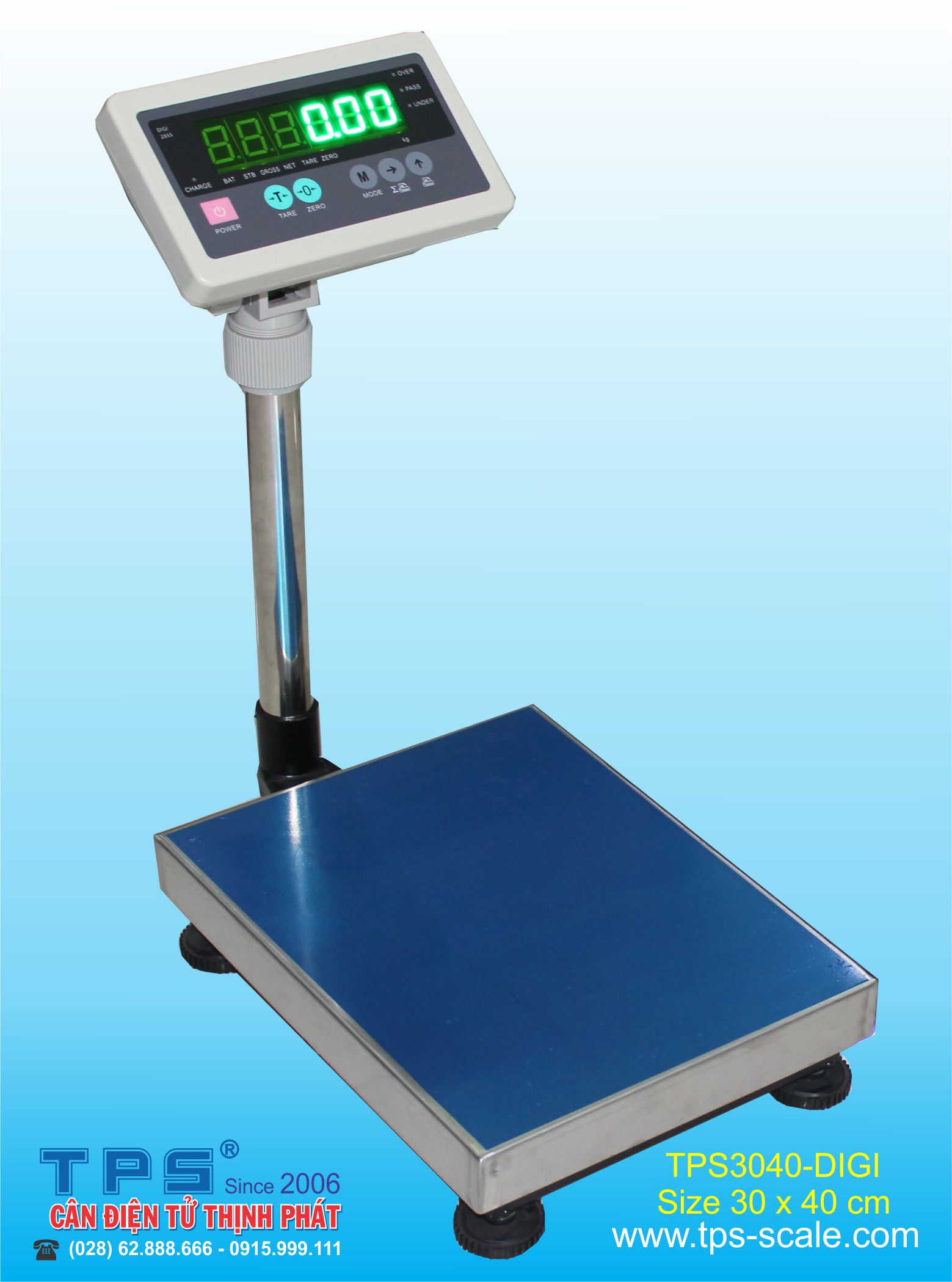 Cân bàn điện tử TPS3040-DIGI Do HÃNG CÂN ĐIỆN TỬ THỊNH PHÁT có trụ sở chính tại số 57 Đường Nguyễn Văn Thương, Phường 25, Quận Bình Thạnh, TP.Hồ Chí Minh lắp ráp và phân phối, quý khách có nhu cầu liên hệ điện thoại (028) 62.888.666 di động có Zalo 0915.999.111 xin cảm ơn.
